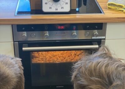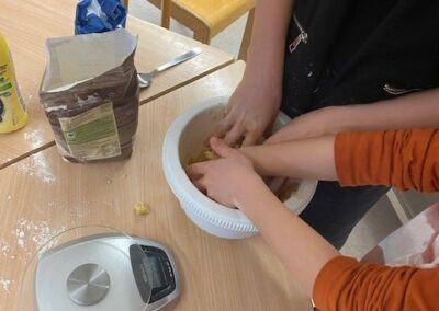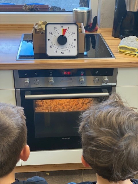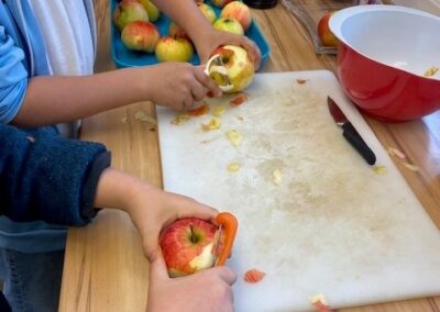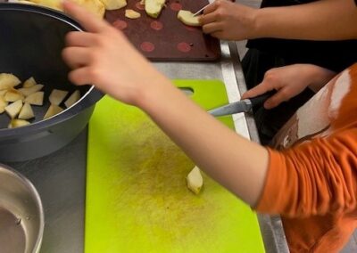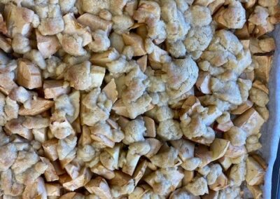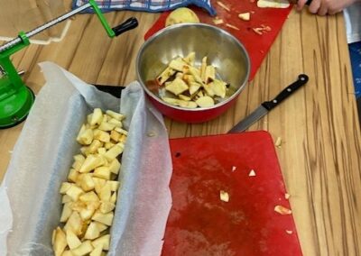 Zusammen haben wir Äpfel geschält und geschnitten, Teig abgewogen und geknetet und leckeren Apple crumble gebacken.
