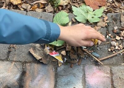 Natürlich bleibt auch Zeit zum Spielen auf dem Hof. Da finden sich „ Schatzsteine“, die wie Kreide zum Malen einladen.
