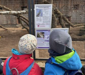 Für Bewegung war ebenfalls gesorgt: Auf dem Spielplatz und später am Klettergerüst konnten sich alle austoben. Besonders mutig zeigten sich die Kinder beim Betreten des Löffelhund-Geheges. Außerdem wurde fleißig gelesen – die Tierbeschilderungen wurden aufmerksam erkundet, was die wachsenden Lesefähigkeiten deutlich zeigte.