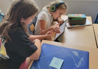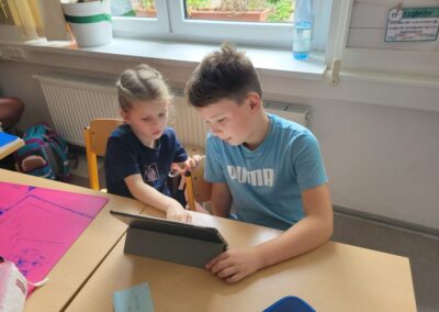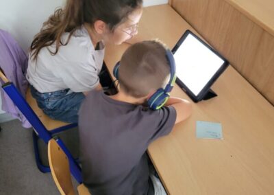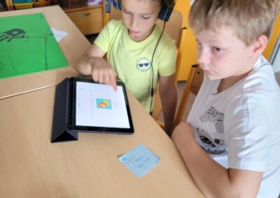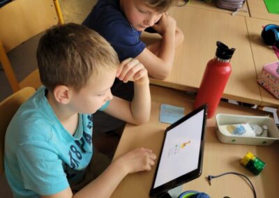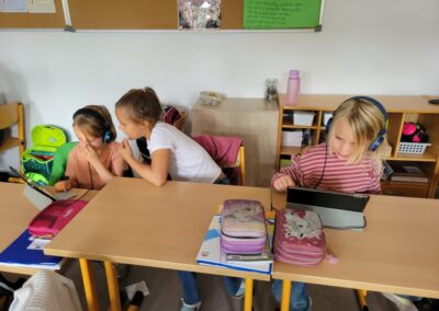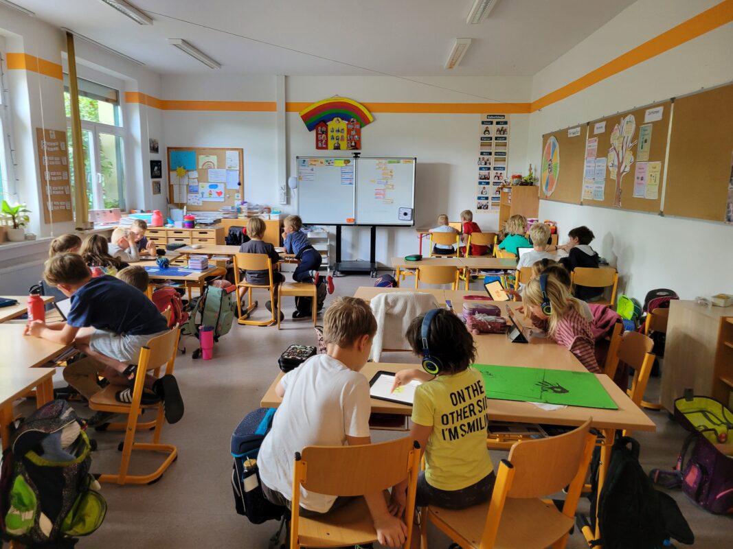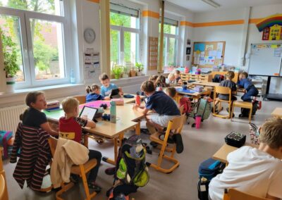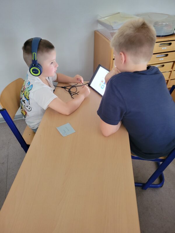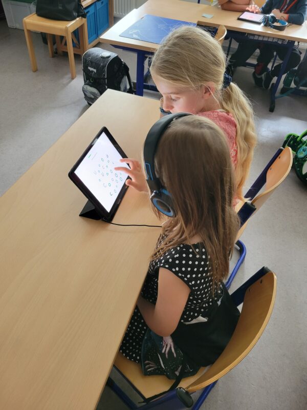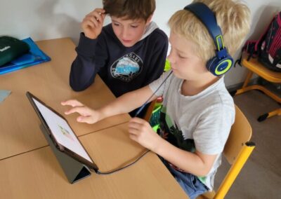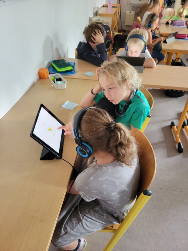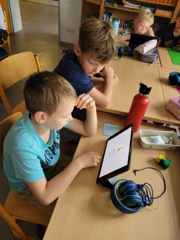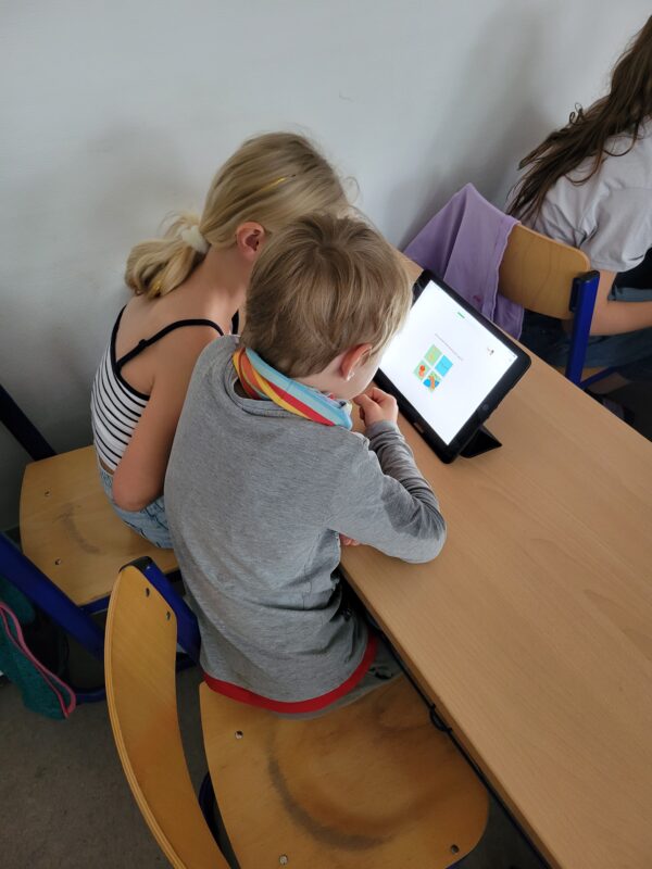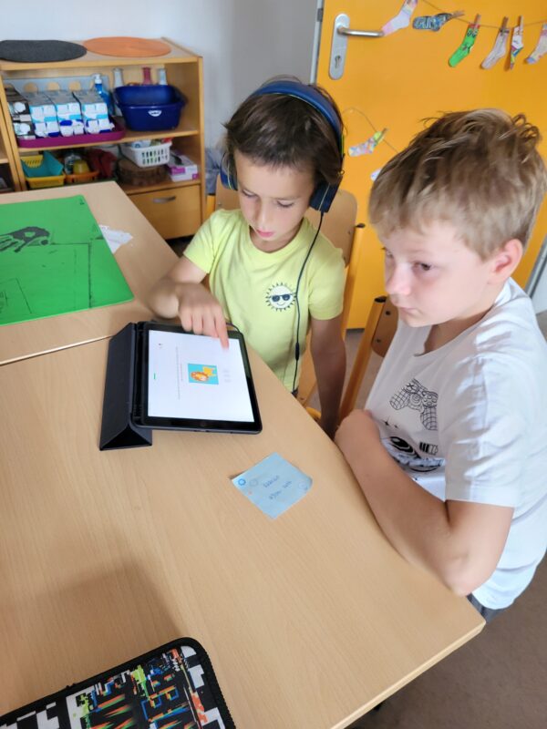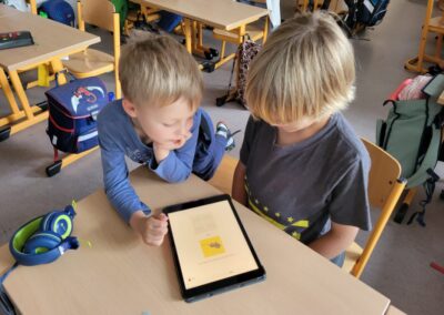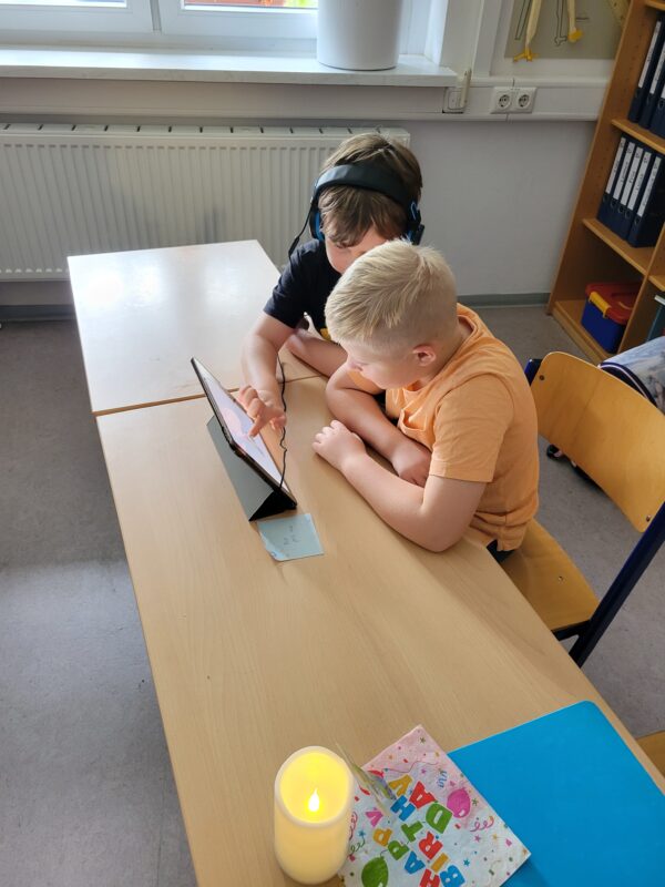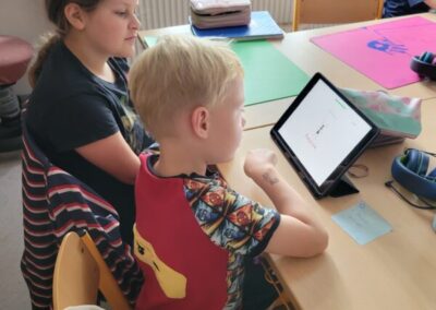Wir haben heute mit unseren Paten an den Tablets gearbeitet. Wir haben ihnen gezeigt wie man mit den Tablets umgeht und bestimmte Programme öffnet. Danach zeigten wir ihnen wie man auf der Anton App ein neues Nutzerkonto erstellt. Zu Beginn der Stunde bearbeiteten wir mit den Kindern Deutsch Aufgaben. Uns und den Erstklässlern hat es sehr viel Spaß gemacht. Wir freuen uns schon auf das nächste Mal.